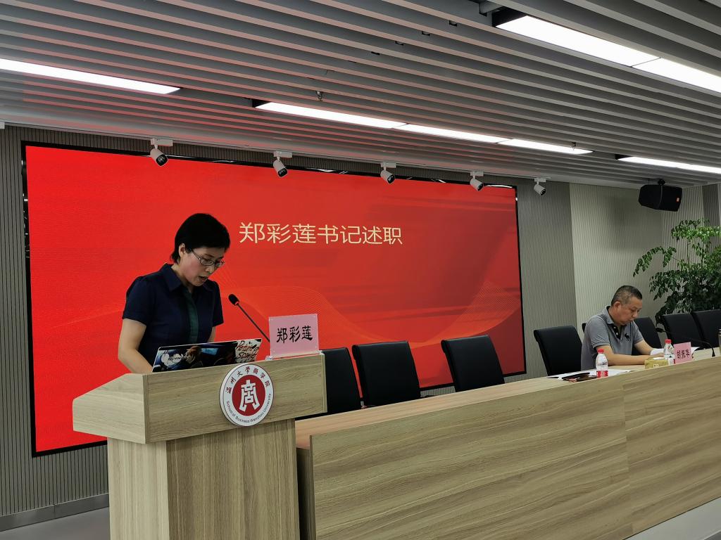 紧接着,郑彩莲书记进行现场述职,提到这一年在大家的全力支持下认真履职,从强根基、攻难点、亮品牌、聚合力、育新机五个方面着手,使党建优势转化为双一流建设的优势,做好防控和发展两不误,并从“德、能、勤、绩、廉”五个方面进行述职。