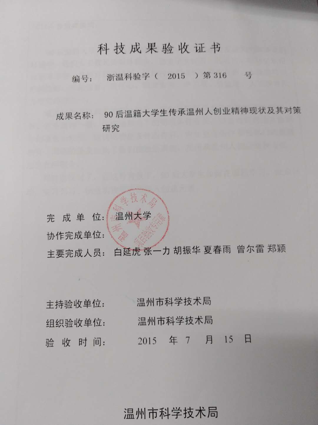 白延虎(理科纵向)90后温籍大学生传承温州人创业精神现状及其对策研究 |