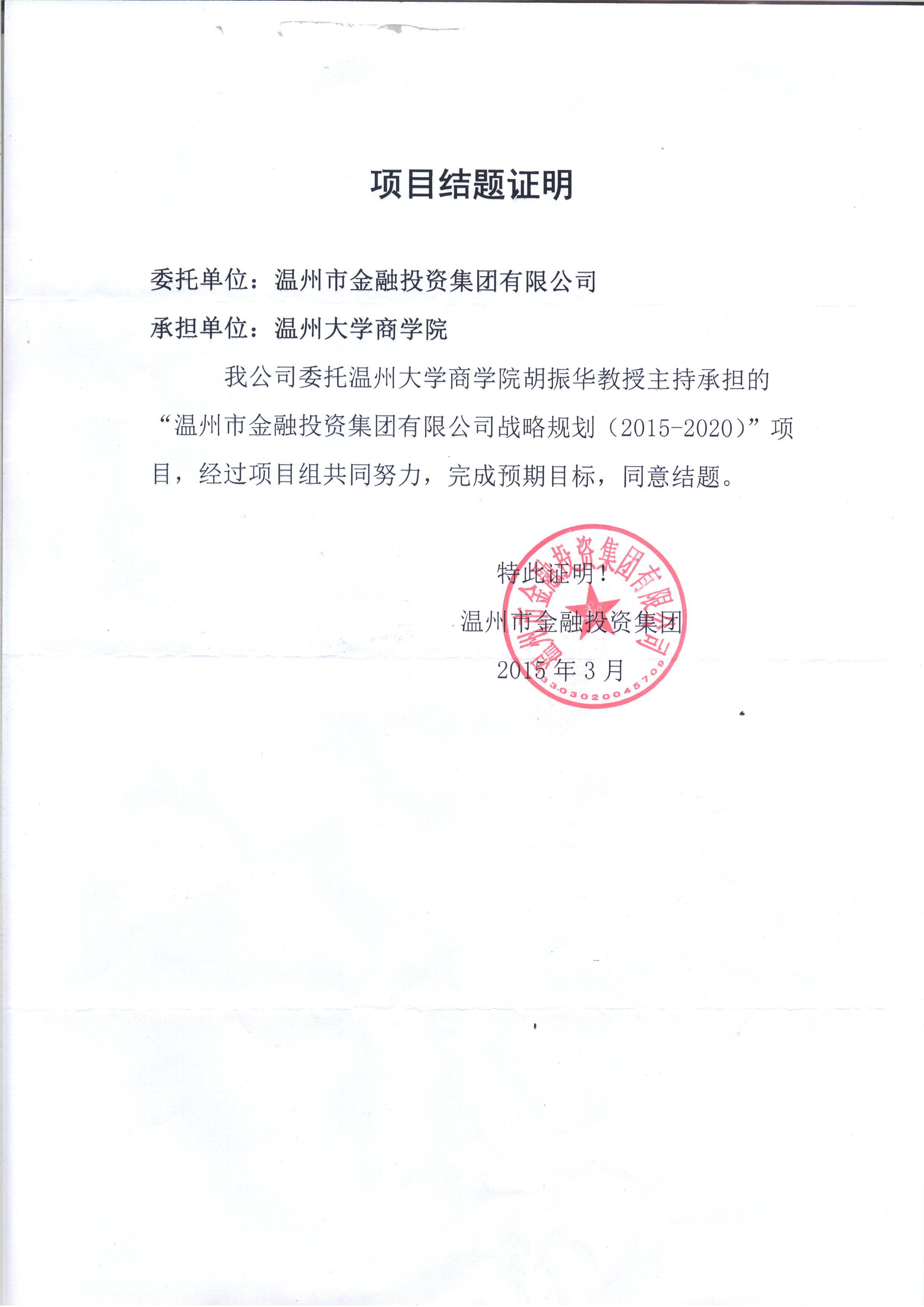 胡振华(文科横向)温州市金融投资集团有限公司战略规划(2015-2020) |